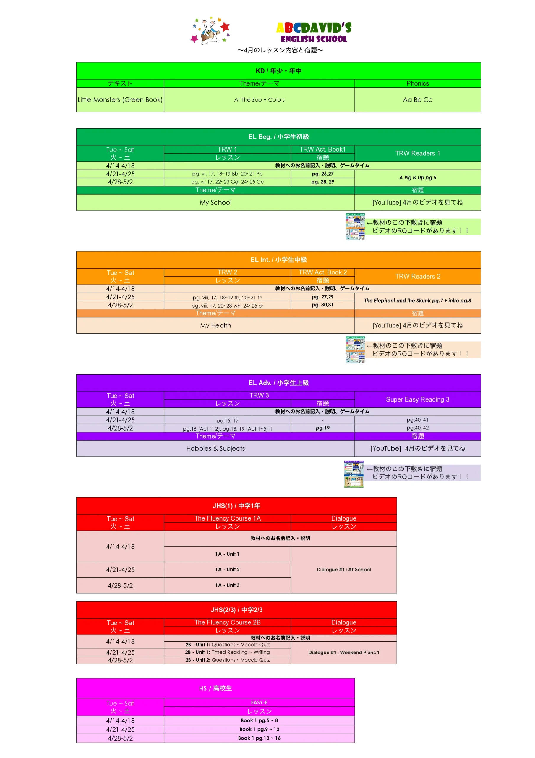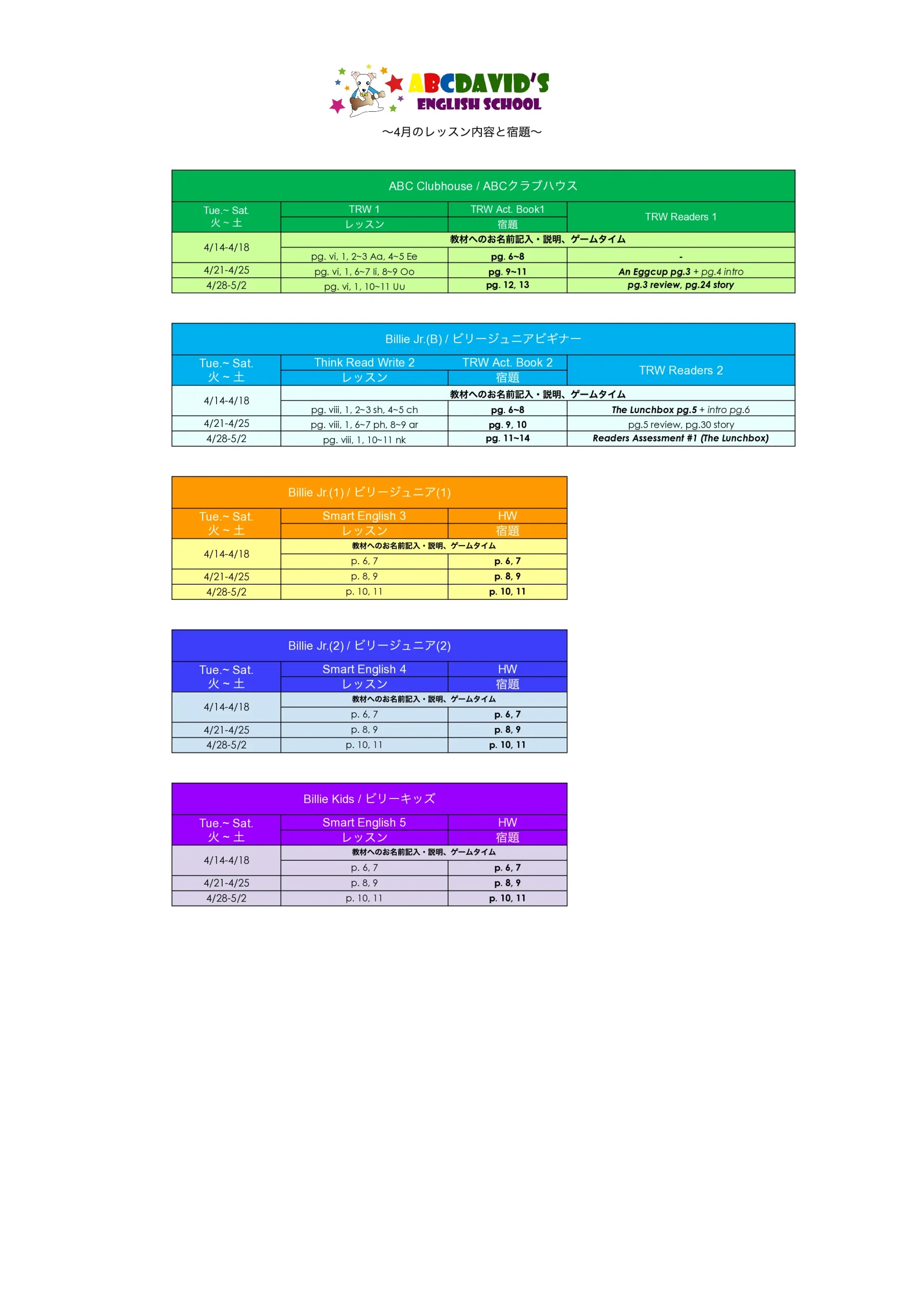 ABCDAVID'S英語スクールの生徒の宿題ページです。