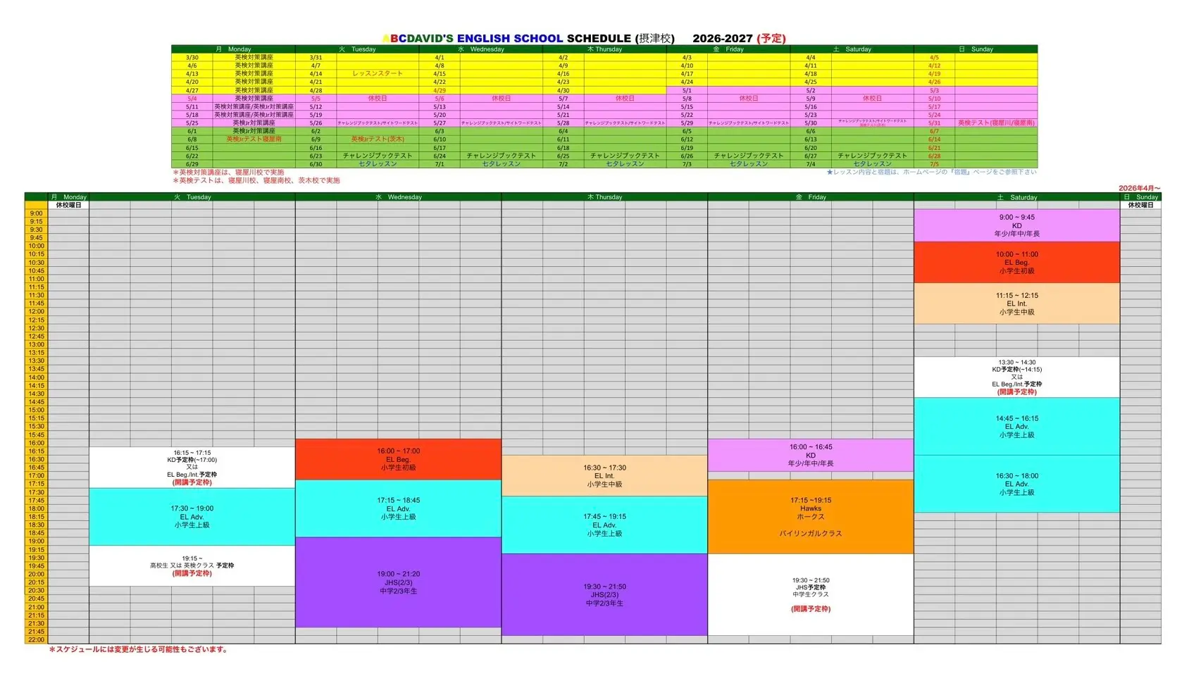 下記のスケジュール表をご覧ください。